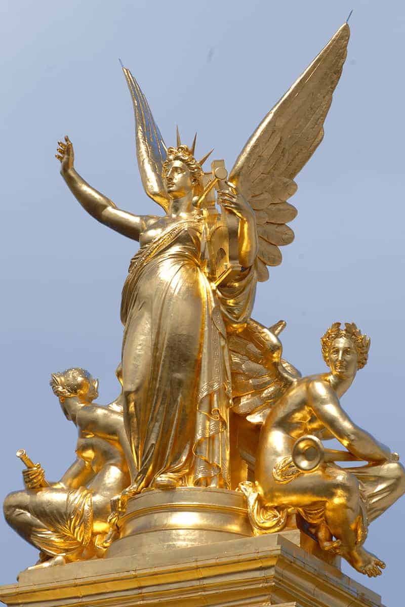 Restauration des statues de la poésie et de l’harmonie de Charles Gumery, surmontant l’Opéra Garnier.
